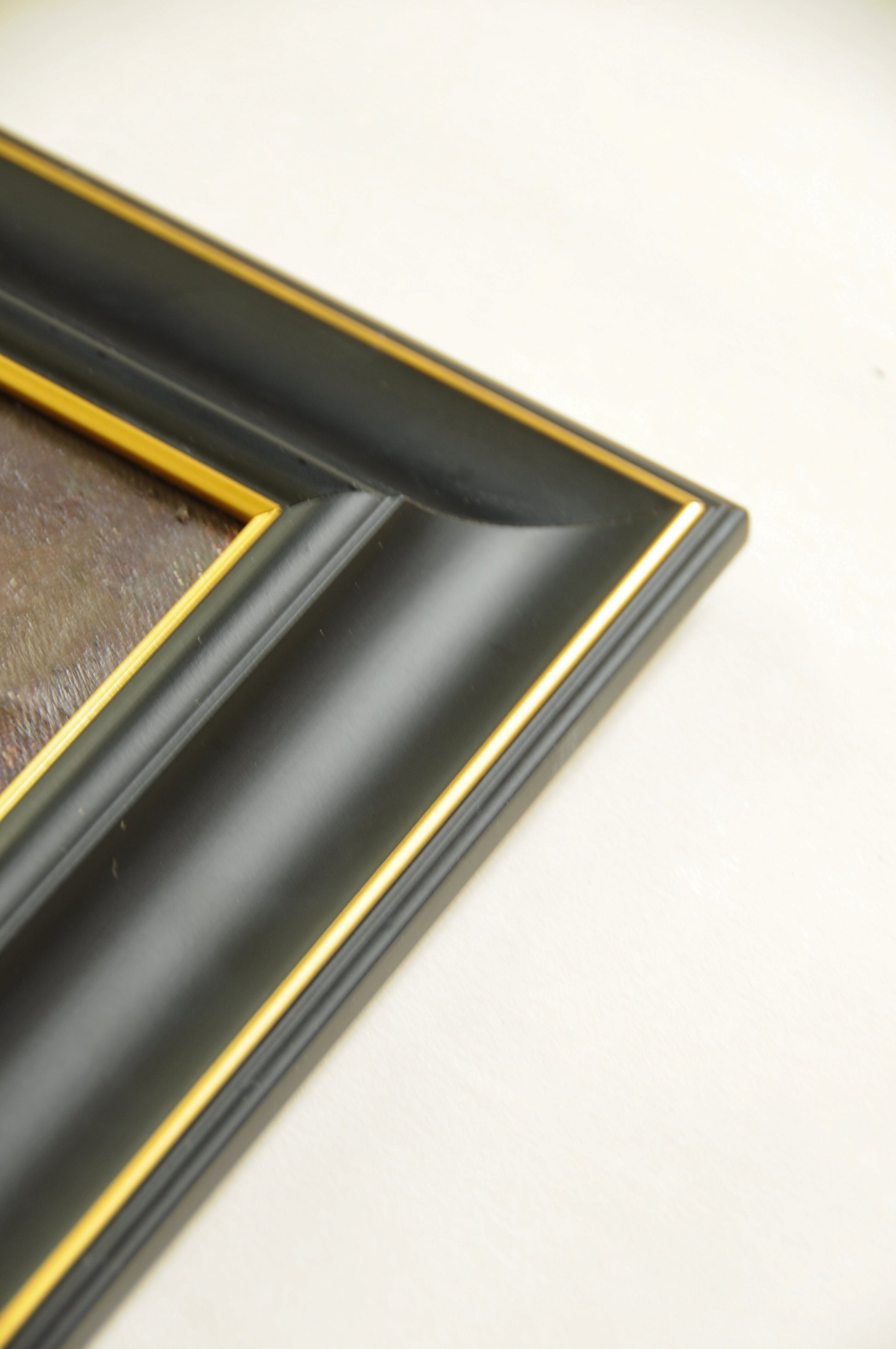 Peinture à l’huile sur toile signée BUCK. L’œuvre représente un paysage de silhouettes d’arbres élancés baignés par la lumière d’un coucher de soleil, dégageant une atmosphère à la fois poétique et mystérieuse. Présentée dans un cadre noir satiné rehaussé d’un filet doré, cette création s’inscrit dans le post-impressionnisme du XXᵉ siècle, caractéristique de l’école flamande par son traitement subtil de la lumière et ses couleurs chaleureuses.