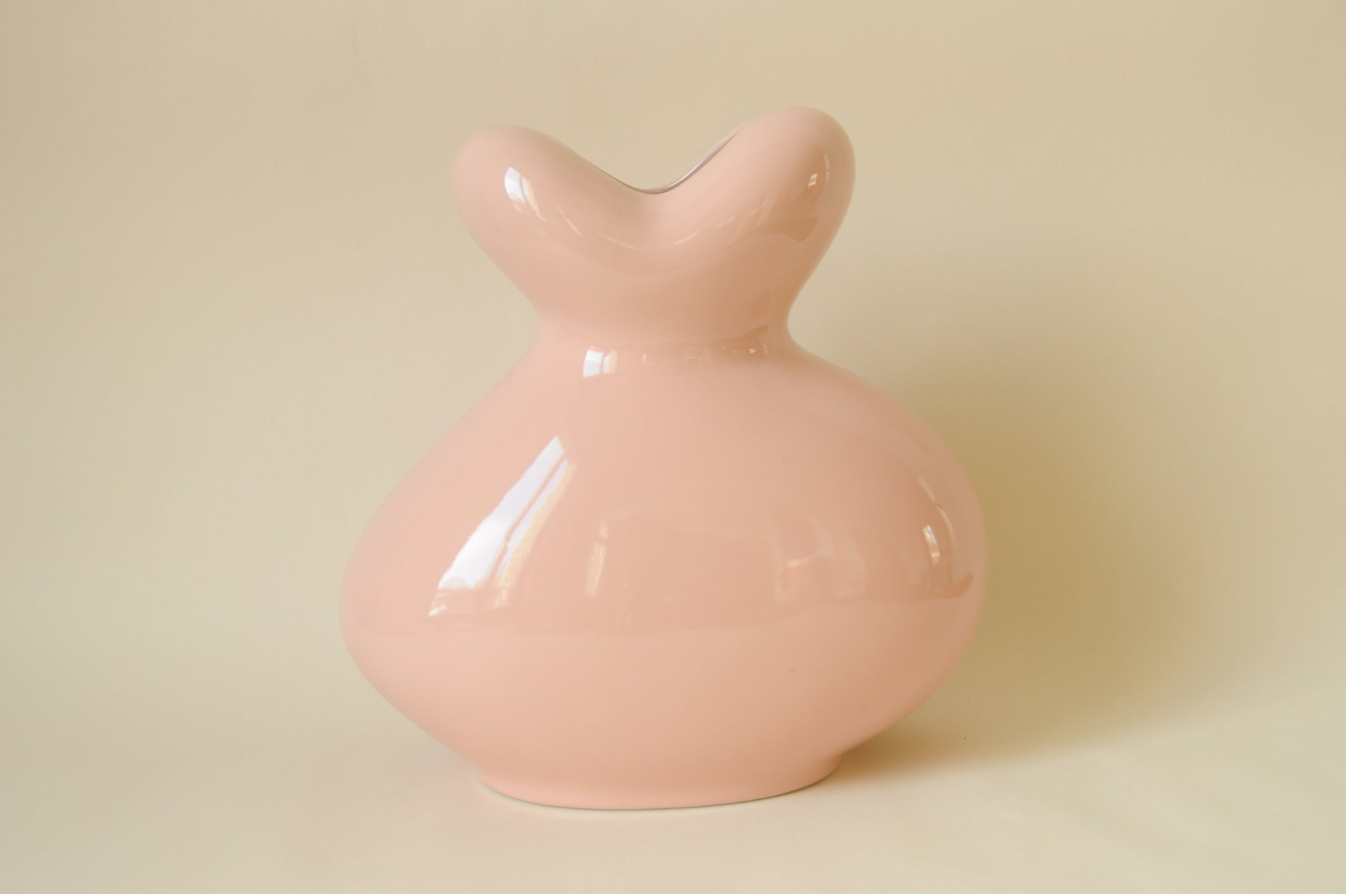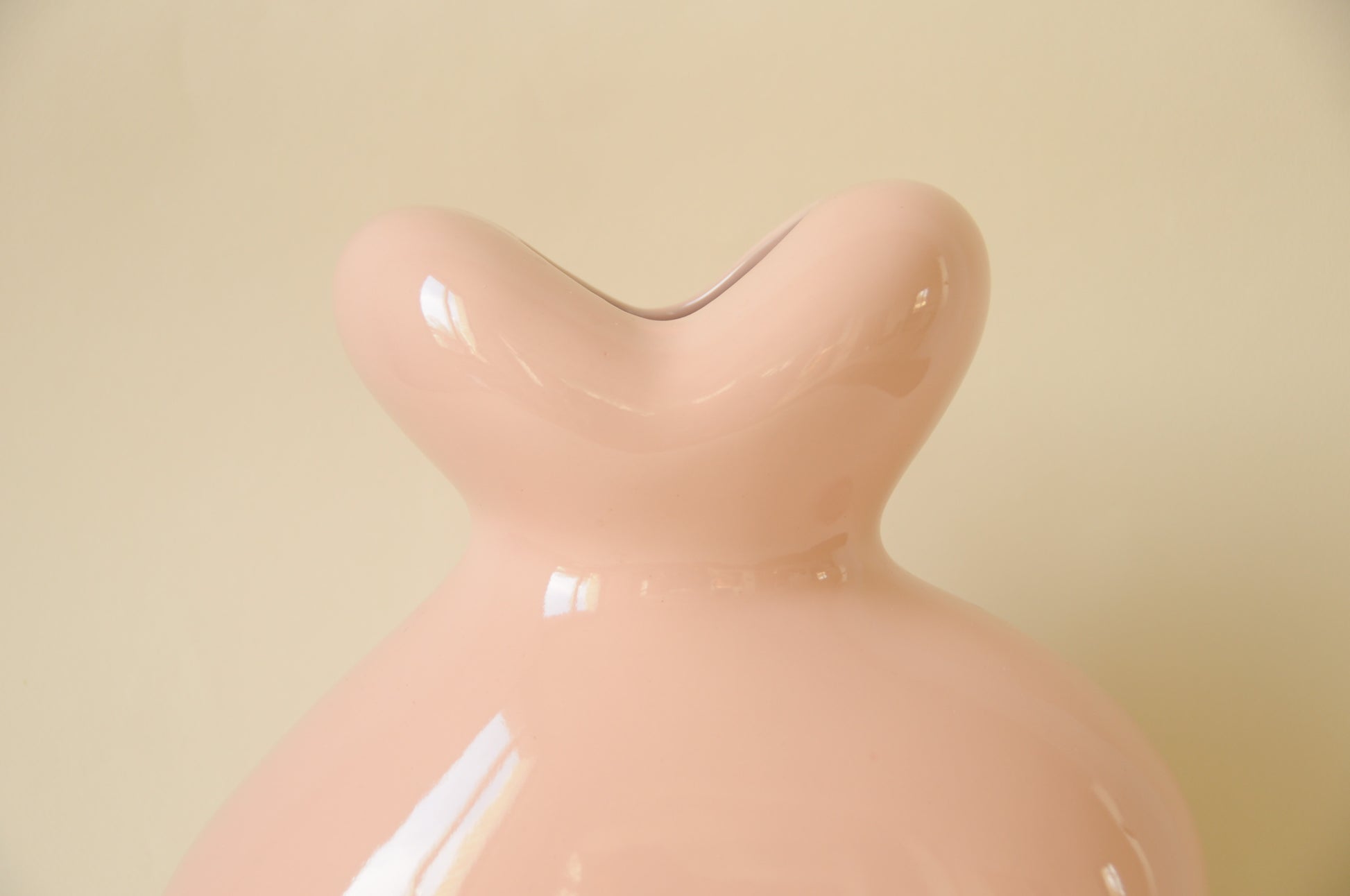 Vase en céramique original par son design abstrait tout en rondeurs et ses allures de bonbons avec sa belle couleur rose.